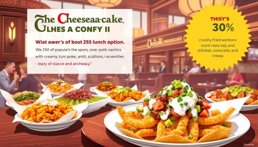 The Cheesecake Factory serves over 250 diverse lunch options. They have highlighted 35 popular items. This makes choosing easier for guests. The Ahi Poke Nachos are a top pick. They mix crunchy, crispy textures with creamy tuna poke, scallions, and avocado on fried wontons. It’s known as the best appetizer.